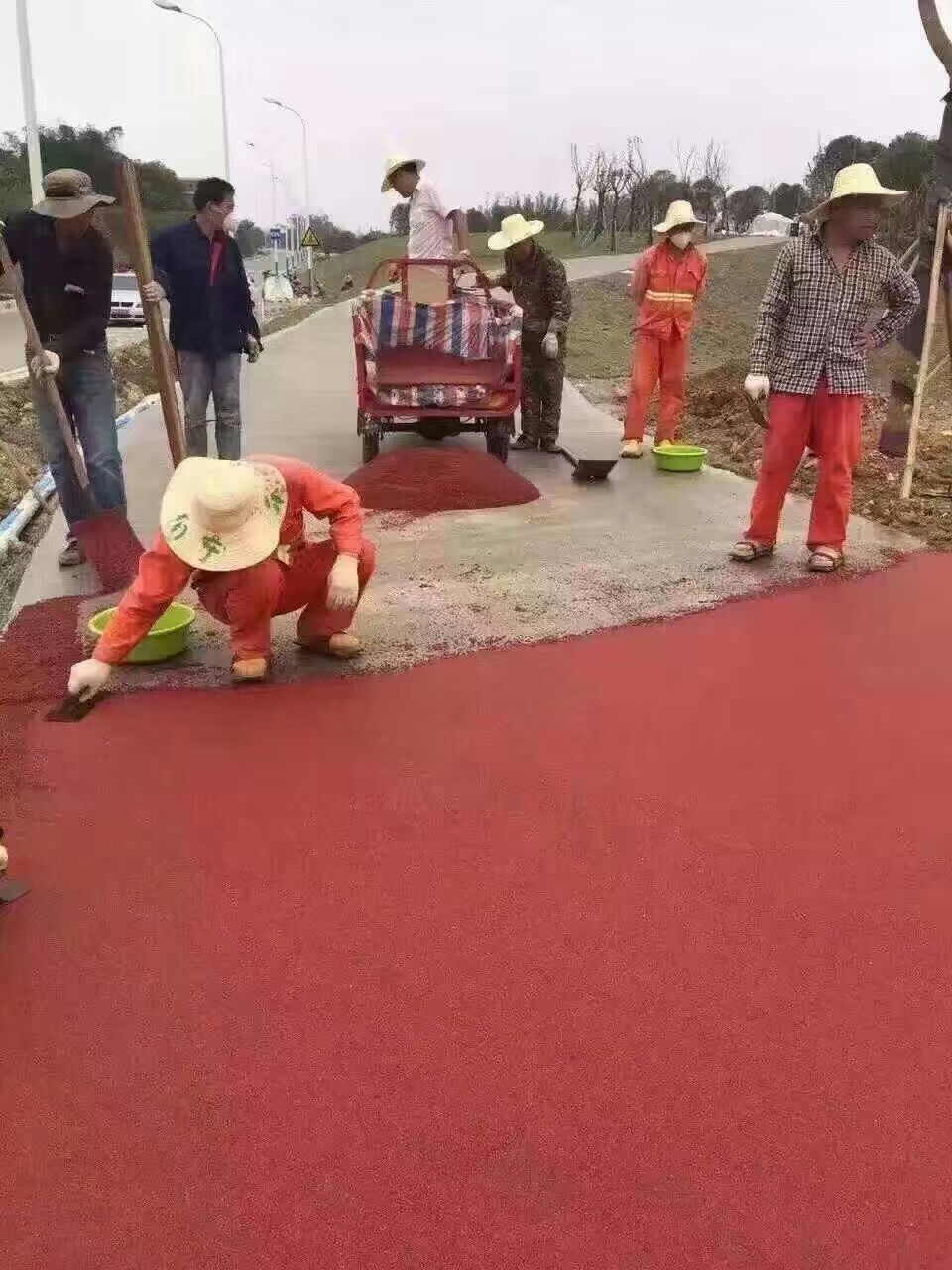 标准化施工流程:严格遵循 “基面清理→基层找平→透水层摊铺→压实成型→固化养护→密封防护” 工序,专业团队把控材料配比与施工细节,确保路面平整、颗粒均匀、透水顺畅。